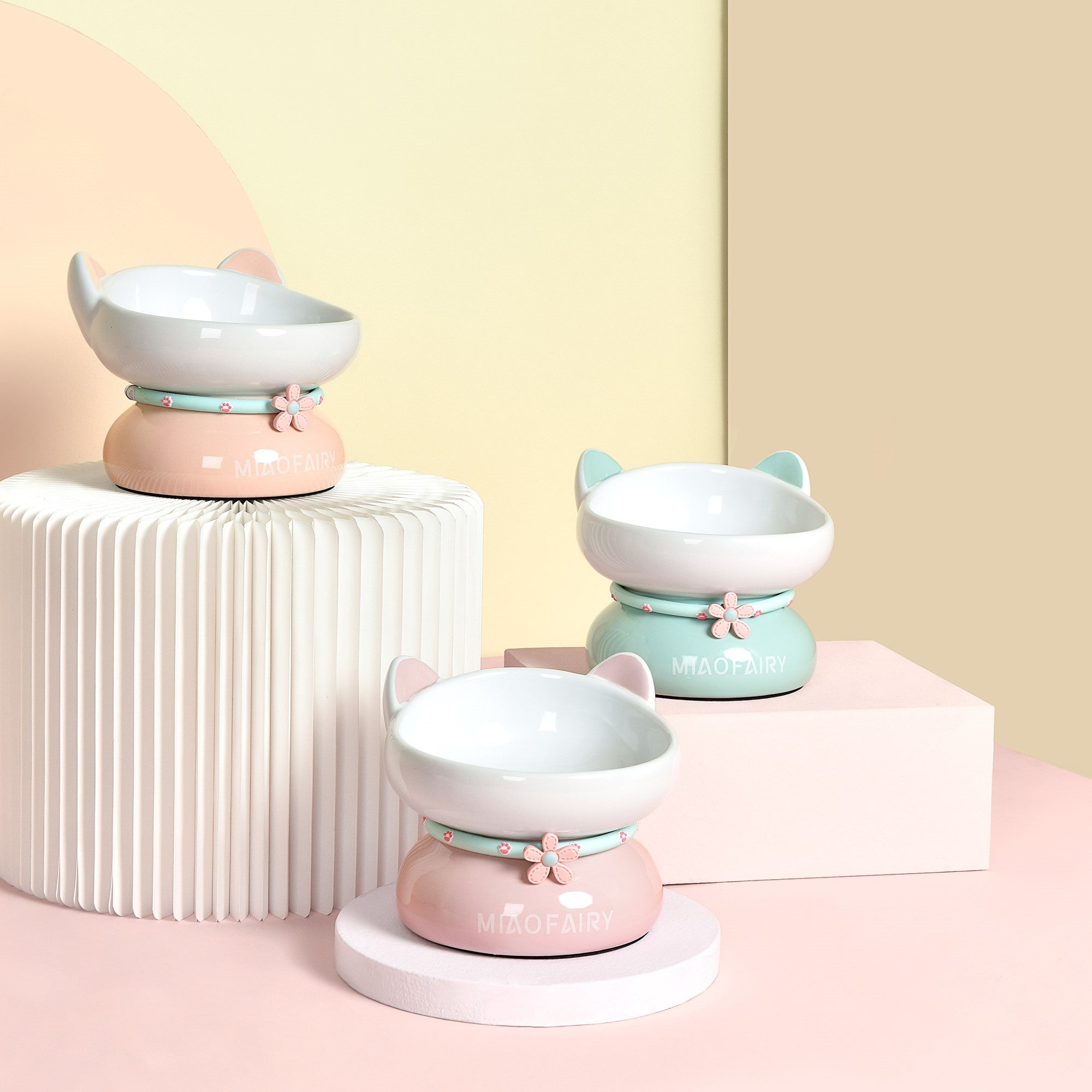 Make mealtime a whimsical experience for your furry friend with the Fairela Pet MiaoFairy Blossom Ceramic Elevated Dog and Cat Bowl. This charming bowl is designed to combine adorable style with practical function for your pet. Made of high-quality ceramic, it is naturally safe, durable, and resistant to scratches. The bowl and base are separate, allowing for easy cleaning and maintenance. The non-slip base keeps the bowl stable, preventing spills and messes. Plus, the ceramic bowl is dishwasher-safe for added convenience.
